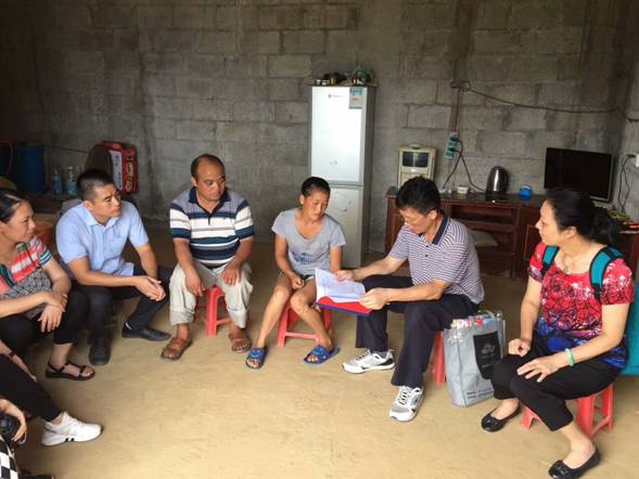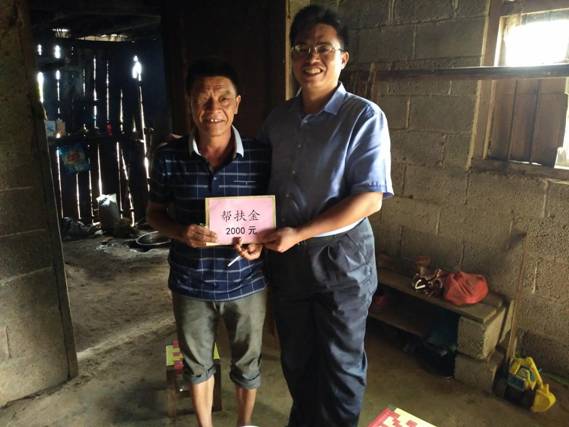 随后,徐新发一行到那卡村那卡屯其帮扶的9户贫困户家中开展“一帮一联”入户走访活动。在入户过程中,详细记录了贫困户的家庭情况和扶贫情况,赠送了慰问品,号召和推动帮扶联系户通过发展生产增收致富。针对那卡屯移民搬迁的工作,中心一行详细记录了新的易安政策,督促驻村第一书记要及时跟进发展,帮扶贫困户今早得到搬迁。了解到帮扶贫困户的儿子还有一年中专毕业,生活存在一定困难,徐新发当场向其捐赠了3000元,鼓励其认真完成学业,努力实现就业创业脱贫。