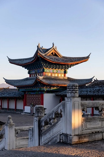 “一座土司府,半部民族史”,木府涅槃,非唯琼楼玉宇的重现,更似一阕中华民族共生的瑰丽诗篇。飞檐斗拱间流转着各民族团结交融的千年絮语,朱甍碧瓦上镌刻着文明互鉴的永恒印记。