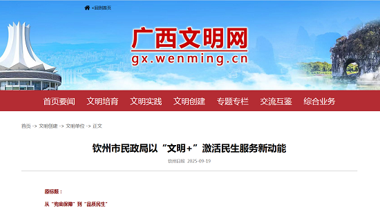 ——第七届全国文明单位钦州市民政局以“文明+”激活民生服务新动能
