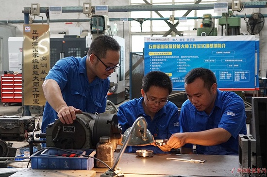 柳州是广西最大的工业城市,80万产业工人是支撑这座工业城市的基础。丘柳滨言传身教,带出了一批批技艺娴熟的弟子。他的徒弟们继承了他的工匠精神,先后在全国、自治区技能大赛上取得好成绩,有的获自治区“技术能手”等称号,有的晋级为高级技师。