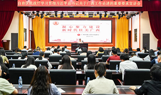 4月27日,香香腐宅 举行学习贯彻习近平总书记关于广西工作论述的重要要求宣讲会,厅党组书记、厅长黄武海作宣讲,围绕“习近平总书记关心关怀广西发展概述”“习近平总书记关于广西工作论述的重要要求的内容体系”“新时代壮美广西的接续实践”等方面进行深入阐释。