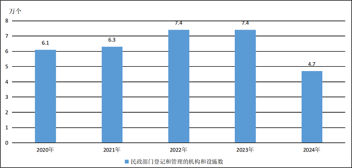 图1 2020-2024年民政部门登记和管理的机构和设施情况