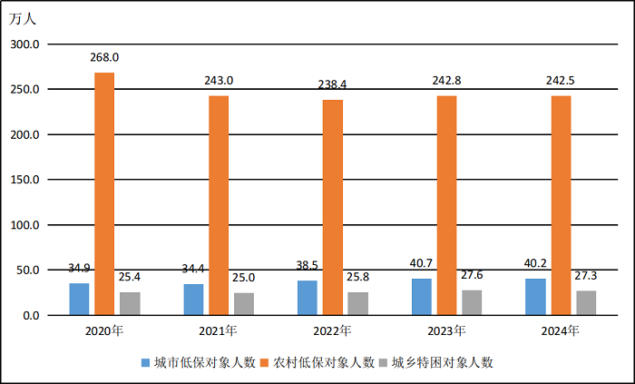 图5 2020-2024年城乡低保对象、城乡特困人员情况