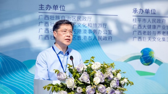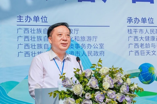 蒋海东在致辞中表示,广西是旅居康养的胜地,自治区将支持旅居康养产业发展写入《广西养老服务条例》,列入广西“十四五”规划和2035年远景目标纲要,出台20多项扶持政策,建设300多个宜游宜居场所,培育100多家旅居养老优质基地,打造20条旅居康养精品路线,举办“到广西养老”“到广西旅居”等系列主题活动,积极打造全国旅居养老目的地。2024年,到广西停留一周以上的异地养老老年人持续攀升,超过380万人次,比2023年增长19.29%。广西是健康长寿的福地,生态质量指数、森林生态改善程度位居全国前列,年均气温21度左右,是最适合人体的温度,尤其适合养老居住。广西是全国“天然药库”“生物资源基因库”和“中药材之乡”。有“中国长寿之乡”38个,占全国总数的三分之一以上。河池、贺州获评“世界长寿市”,巴马、浦北、上林、乐业4个县获评“世界长寿之乡”。全区百岁以上老人6900多人,占常住人口的十万分之13.8,是全国平均水平的1.6倍以上。广西开放包容、热情好客,有壮、瑶、苗等12个世居民族,拥有独特的风俗习惯、民族文化,素有“能帮就帮”的好精神、好口碑。诚挚欢迎全国各地的朋友来广西旅居养老,体验八桂大地的秀丽风景,感受壮美广西的长寿福气和风土人情。