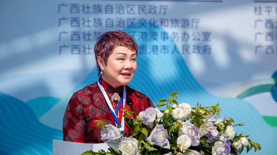 香港广西总商会常务副会长兼秘书长胡玉贞代表香港长者首发团成员发言。