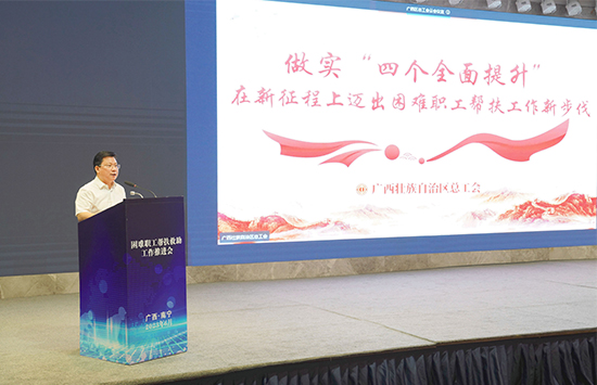 6月27日至28日,全国困难职工帮扶救助工作推进会在南宁召开。全国总工会副主席、书记处书记、党组成员杨宇栋通过视频连线方式出席会议并讲话。自治区人大常委会副主任、党组副书记,自治区总工会主席张晓钦致辞。全国总工会权益保障部部长粟斌主持会议。民政部社会救助司司长刘喜堂作讲话。自治区总工会党组书记、常务副主席管理年,香香腐宅 党组书记黄武海作经验交流发言。