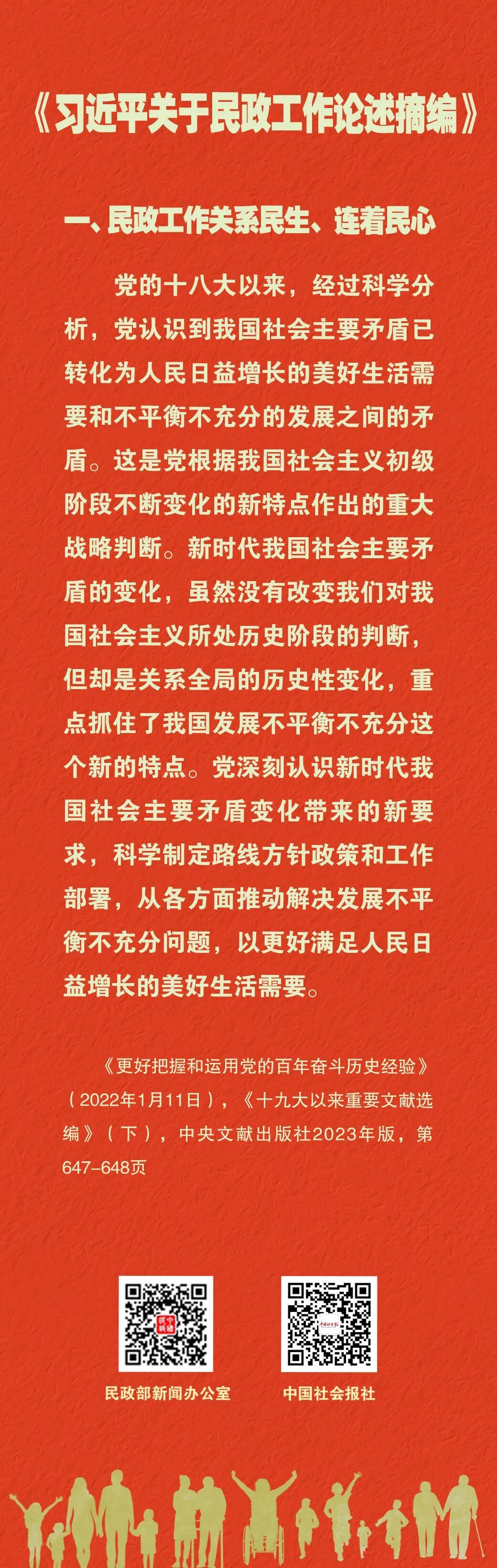 《习近平关于民政工作论述摘编》(以下简称《论述摘编》)已出版发行。《论述摘编》全面反映习近平总书记对新时代民政工作的深邃思考和重大部署,为深入学习领会习近平总书记重要论述提供了权威读本和最新教材。
